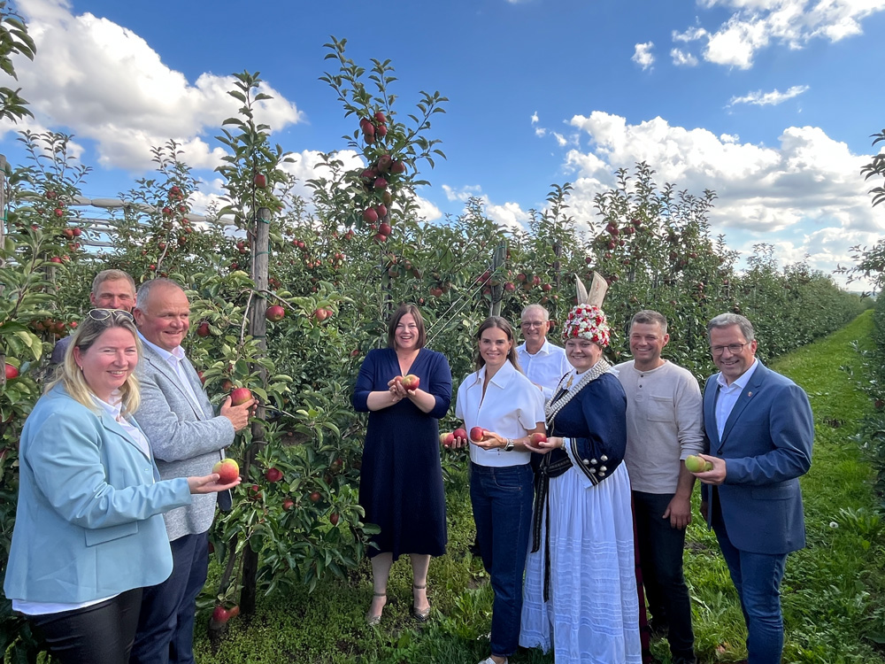 Auf der diesjährigen Apfelsaisoneröffnung im Alten Land auf dem Obsthof Oliver Blohm in Hamburg trafen sich Vertreter aus Politik, Medien und Landwirtschaft zum symbolischen Pflücken der ersten Äpfel und setzten ein Zeichen für heimische Qualität. Im Alten Land, dem größten zusammenhängenden Obstanbaugebiet Nordeuropas, bewirtschaften rund 500 Familienbetriebe 10.000 Hektar, davon etwa 90 % Apfelanlagen. Jeder dritte deutsche Apfel stammt aus dieser Region.