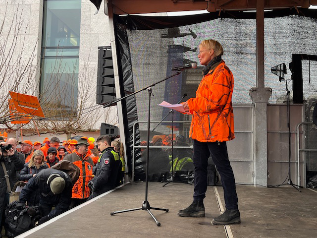 Hinzu kam die große Jägerdemonstration mit rund 20.000 Teilnehmern am 30. Januar 2025 in Hannover, zu der die Landesjägerschaft erfolgreich aufgerufen hatte. Auch viele Vertreter des ZJEN und des Grundeigentums begleiteten den Demonstrationszug zum Landtag. Mit eindringlichen Worten forderten nicht nur LJN-Präsident Helmut Dammann-Tamke, sondern auch ZJEN-Präsidentin Astrid Garben-Mogwitz und weitere Redner auf dem Podium den Erhalt des bewährten Jagdrechts und appellierten an den Zusammenhalt des ländlichen Raums.